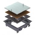 Junction box insert for blanking locking of a square mounting opening of nominal size 4 in duct or trunking systems and system floors for indoor use.