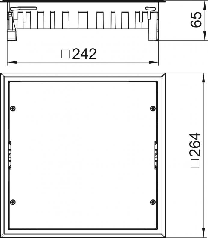 Junction box insert for blank closing of a square mounting opening of nominal size 9 in trunking systems and in raised and cavity floors for indoor use. Polyamide floor covering profile.