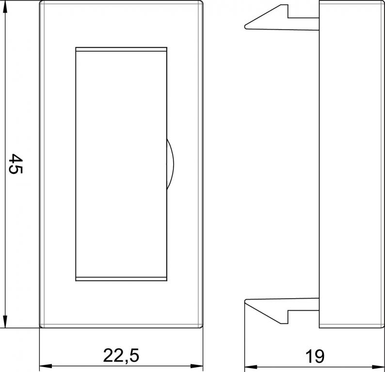 Blanking cover with labelling panel, suited for labelling devices in Rapid 45 device installation trunking systems and ISS service poles with a 45 mm system opening.