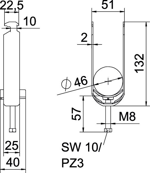 Clamp clip with hammerhead foot, plastic pressure sleeve made of polypropylene. For vertical and horizontal mounting of 2 single cables on a C-profile rail. For a slot width 16–17 mm. With 1-start screw thread on pressure sleeve, universal hexagonal screw head WAF10, with slot and cross recess. Suitable for assembly indoors and outdoors. Multiple cables should be separated by double sleeves. We recommend the use of a counter-sleeve.