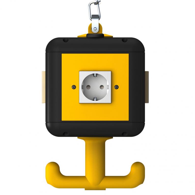Equipped as follows: 4x single protective contact sockets 16 A/250 V with increased touch protection, prewired for two AC currents, connection via 2x 3-pin terminals, 1x CEE socket 16 A/415 V, with partition for circuit separation.