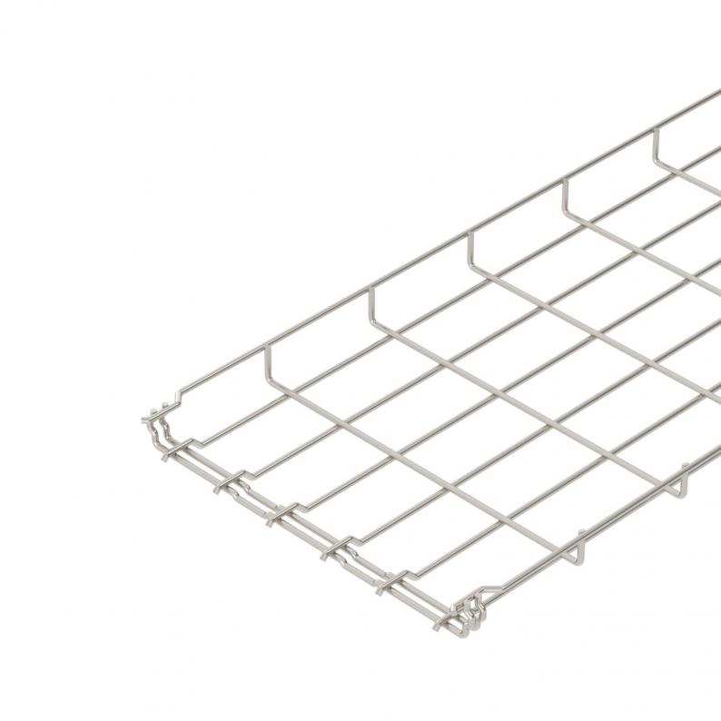 No additional connection components are required for the mesh cable tray, it is simply interlocked. The grid width is 50 x 100 mm (exception: GRM 35/50 = 20 x 100 mm).