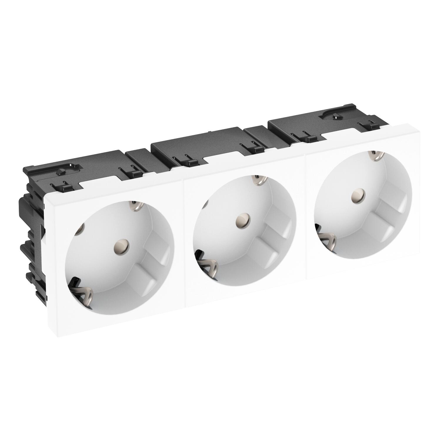 Protective contact socket triple 33°, with increased touch protection, with screwless terminals, 2-pin, 16 A, 250 V~, with connection terminals to IEC 60884-1.